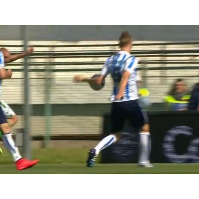 L'immagine di Salamon, mostrata nel fotogramma non è nel momento dell'impatto, quando arriva il pallone ,il braccio di Salamon è quasi attaccato al corpo. Attenzione alle immagini "schiacciate". Minelli voto 5.