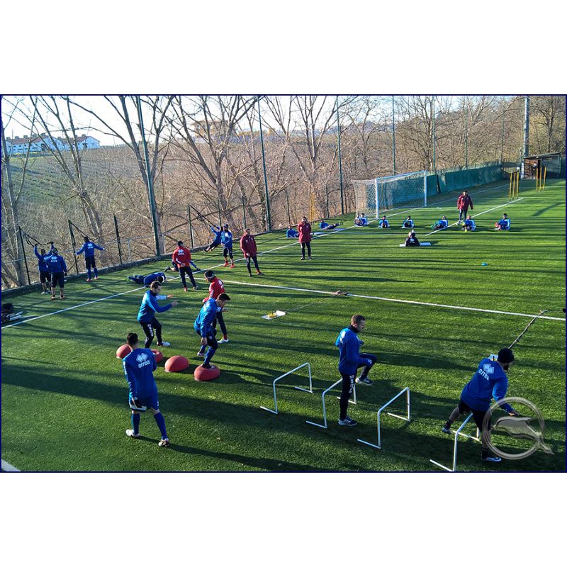 Continua la settimana lavorativa dei biancazzurri in vista del match domenicale(ore 17.30) contro il Perugia di Bisoli. Oggi, contrariamente a quanto programmato in precedenza, è stata svolta solo una seduta, ovvero quella pomeridiana. Massimo Oddo infatti, alla luce dell'ottimo rendimento dei ragazzi fino a questo momento, ha deciso di annullare la sessione mattutina. Dopo un breve discorso del mister, i ragazzi hanno eseguito fase aerobica e circuito composto da lavoro di forza con pesi, ed esplosività con slitta traino sui quindici metri. A seguire scatti ripetuti con cambi di direzione. Assente Crescenzi (oggi terapie,domani esami strumentali), dopo la distorsione alla caviglia subita nell'allenamento di ieri e raccontata in anteprima nel notiziario. Il terzino userà le stampelle per un determinato periodo di tempo. La buona nuova è il rientro in gruppo di Benali, ampiamente recuperato. Successivamente mini partita a tema con alcuni elementi ad agire di sponda sui lati della porta ed in posizione laterale, il tutto mentre Dario Di Giannatale ha guidato un secondo gruppo nello sviluppo di un'esercitazione tecnica con conclusioni a rete finali. Si è allenato regolarmente Sansovini, al centro di insistenti voci di mercato che lo vogliono lontano da Pescara. In gruppo anche Fiorillo dopo aver smaltito la sindrome influenzale che l'ha tenuto fermo per due giorni. Da segnalare anche la presenza di Luca Serafini, noto giornalista sportivo nonché tifoso del Milan, in buoni rapporti con mister Oddo. Domani allenamento pomeridiano alle ore 15.