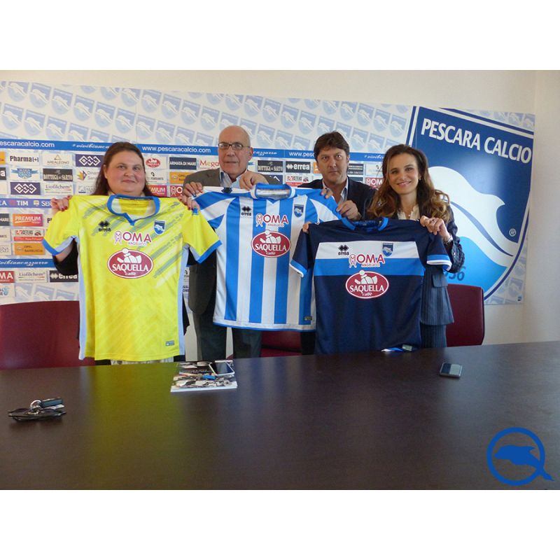 La parola passa anche a Bianca Saquella: «Ringrazio il Pescara e il presidente Sebastiani per averci dato l'opportunità di rientrare come sponsor di maglia. Col nostro ingresso questa squadra è una società davvero in mano ai pescaresi: presidente di Pescara, allenatore di Pescara, direttore sportivo di Pescara e ora anche sponsor di Pescara. Penso che questo non avvenga in nessun altra città». Qualche dichiarazione anche di Enrico Saquella: «Siamo sempre stati vicino alla squadra sia come pescaresi che come abruzzesi, perché il Pescara Calcio non rappresenta solo questa città ma l'Abruzzo intero. È un'eccellenza. Viviamo in una regione piccola che per numero di abitanti è come un quartiere di Roma, dovremmo essere tutti vicini a questa squadra, anche altri miei colleghi impreditori dovrebbero lasciando perdere certi campanilismi. Questa squadra è seguita anche fuori dall'Italia, e io lo so visto che la nostra azienda è presente anche all'estero: qualche settimana fa ero a Panama per lavoro, ho incontrato un abruzzese che mi ha raccontato di come si svegli appositamente per vedere le partite del Pescara. Questa è una squadra che merita e noi volevamo rafforzare la sua pescaresità. È giusto dare al territorio ciò che il territorio ci dà».