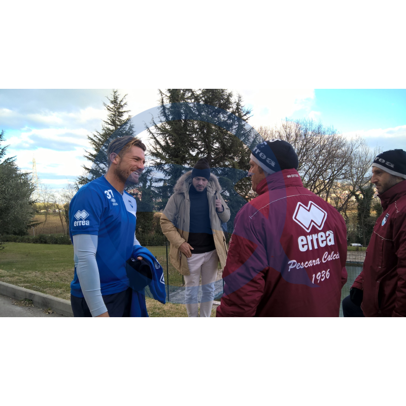 Sorridente nella prima stretta di mano con Massimo Oddo. Così si presenta Guglielmo Stendardo, nuovo difensore del Pescara appena prelevato dall'Atalanta. L'esperto calciatore si è aggregato ai suoi nuovi compagni e prenderà parte all'allenamento odierno, il primo dopo le festività natalizie.