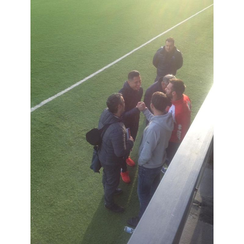 L'ex bomber biancazzurro in visita ai suoi vecchi compagni.