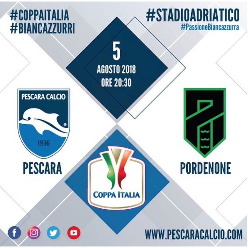 Questa sera primo appuntamento ufficiale per il Pescara di Pillon. All’Adriatico arriva il Pordenone di Tesser. Un primo match che potrebbe dare risposte importanti rispetto alle amichevoli giocate nei giorni precedenti. Da subito in campo Scognamiglio, Monachello e Antonucci. Spazio anche a Memushaj. Queste le probabili formazioni.