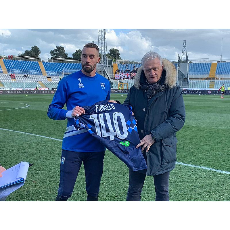 L'ex portiere biancazzurro celebra le 140 presenze di Fiorillo nel pre partita di Pescara-Padova.