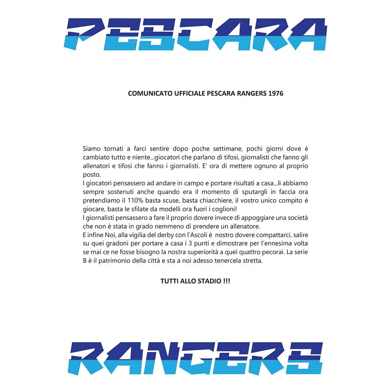 Comunicato ufficiale Pescara Rangers