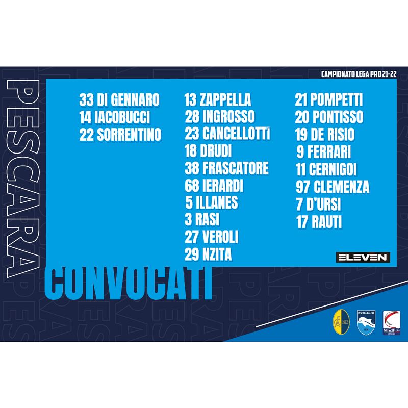 Pescara, i convocati di Auteri per il Modena