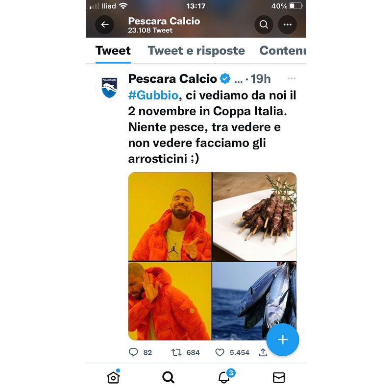 Ma ci siete o ci fate? Mi sembra un tweet assolutamente innocuo e divertente. È morto qualcuno a Gubbio? Mi pare di no… l’articolo piuttosto mi sembra proprio demente. Basta guardare i retweet e i likes… chi contesta l’operato del social media manager del Pescara per questo post non capisce niente. Di Social Media di sicuro.
