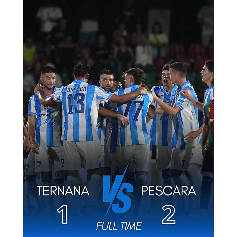 Il Pescara trova i primi tre punti stagionali e lo fa battendo per 1-2 la Ternana di Ignazio Abate. Il primo tempo si sblocca al 41’ con Bentivegna e sulla compartecipazione del portiere umbro Franchi. Nella ripresa Carboni trova la rete del pari ma dopo un giro di orologio ecco il gol vittoria di Dagasso che va ad esultare sotto il settore ospiti occupato da 539 sostenitori biancazzurri.