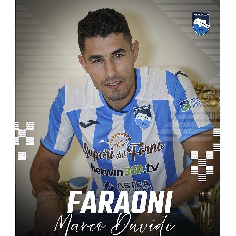 Faraoni ha già scelto di vestire la maglia numero 19. Reduce da esperienze importanti nel panorama nazionale, il giocatore ha scelto Pescara per rimettersi in gioco e tornare protagonista.