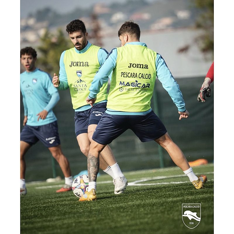Seduta di lavoro mattutina per la squadra sul terreno sintetico dello Stadio Mastrangelo di Montesilvano. Il gruppo ha svolto una prima fase di attivazione, seguita da esercitazioni dedicate al possesso palla e da una partitella a campo ridotto che ha coinvolto l’intera rosa a disposizione dello staff tecnico.