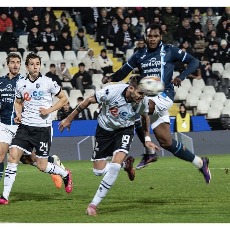 Al 72’ grande occasione per i biancazzurri: Olzer appoggia dietro dentro l’area per Meazzi (entrato al posto di Brugman) con un tiro a giro potente che finisce di poco fuori. Due minuti dopo altra incursione di Meazzi dove questa volta trova l’esterno della rete. Al 77’ il Cesena trova il raddoppio con Francesconi che dalla distanza calcia verso lo specchio della porta trovando anche la deviazione della retroguardia biancazzurra: 2-0. Un minuto dopo cross di Olzer sul primo palo per Caligara che trova il palo, poi Letizia prova un tiro-cross deviato in corner da Klingsmann. All’87’ l’arbitro, dopo un check al VAR, concede il calcio di rigore al Cesena per il tocco con il braccio largo di Bettella. Dal dischetto Shpendi si fa ipnotizzare da Desplanches.Â