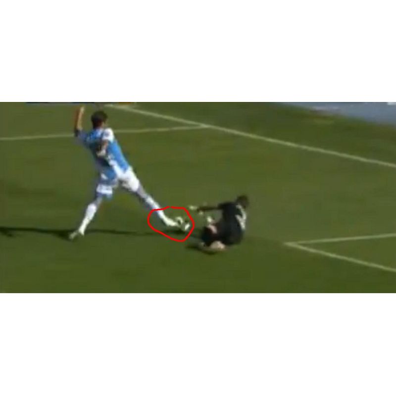 L’uscita di Guarna è fallosa. Tocca il pallone che in parte cambia direzione, ma soprattutto travolge nettamente Maniero che cade e non può concludere una chiara azione da gol: Ragusa era solo a porta completamente vuota a poca distanza e, infatti, Maniero stava cercando di girarsi per servire il compagno libero. Il fallo meritava il cartellino almeno giallo.