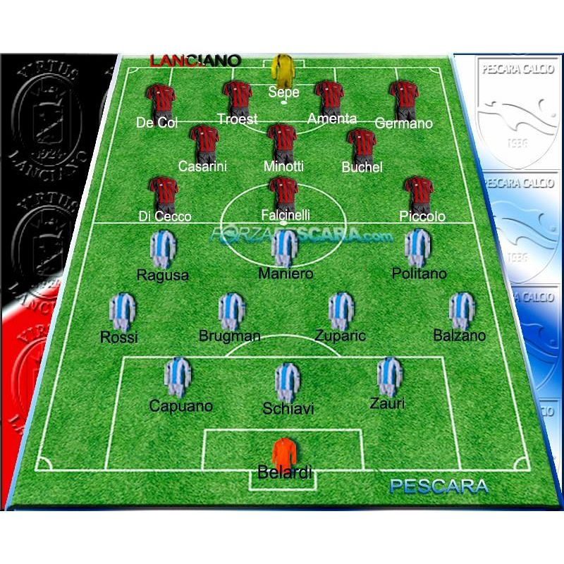 LANCIANO: Sepe, De Col, Troest, Amenta, Minotti (19’ st Plasmati), Buchel (32’ st Turchi), Falcinelli, Di Cecco (27’ st Paghera), Germano, Gatto, Casarini A disposizione: Aridità , Aquilanti, Fofana, Vastola, Niclao, Ferrario Allenatore: Baroni