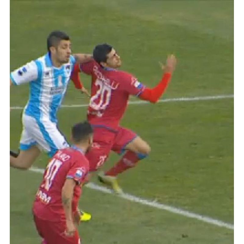 In questa immagine possiamo osservare il momento prima del fallo con Balzano che, perso il giocatore toscano in velocità, mette la mano sulla spalla per fermarlo in malo modo.
