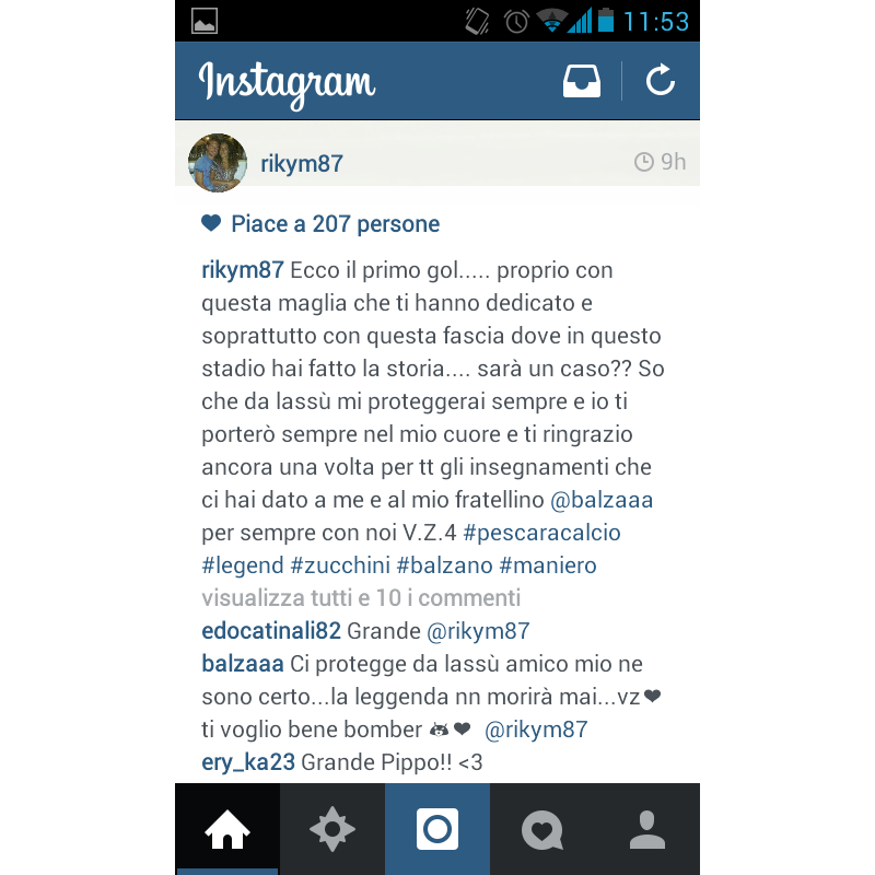 Sul suo profilo Instagram, sotto una foto della partita di ieri sera, Riccardo Maniero scrive: "Ecco il primo gol…proprio con questa maglia che ti hanno dedicato e soprattutto con questa fascia dove in questo stadio hai fatto la storia…sarà un caso?? So che da lassù mi proteggerai sempre e io ti porterò sempre nel mio cuore e ti ringrazio ancora una volta per tt gli insegnamenti che ci hai dato a me e al mio fratellino @balzaaa (Balzano, ndr) per sempre con noi V.Z.4"