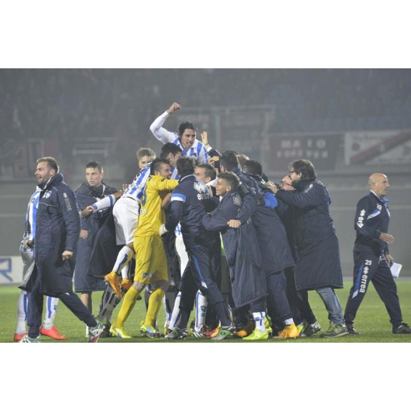NOTE: Serata fredda, terreno in ottime condizioni. Ammoniti: Paghera, Grillo, Memushaj, Monachello, Aquilanti, Troest, Melchiorri. Corner: 5 a 4 per il Pescara. Spettatori 10 mila circa. La rappresentanza di tifo frentano, sistemata nel settore della curva sud, si avvicina alle 1000 unità. I sostenitori biancazzurri, sempre alle prese con lo sciopero del tifo, si sono presentati sulle gradinate della Nord con un quarto d’ora di ritardo e annunciati da qualche assordante petardo e da un paio di striscioni fissi, il primo : “La nord un solo imperativo, onorare la maglia” e l’altro in memoria di Vincenzo Zucchini: “ 24/11/ 13 24/11/ 14 un capitano per sempre”. Poi nel corso del I tempo è comparso anche un “omaggio” al direttore di gara di Modena vs Pescara di sabato scorso: “ Ghersini servo della lega, bastardo”.