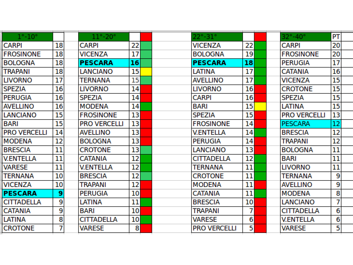Andamento durante il campionato