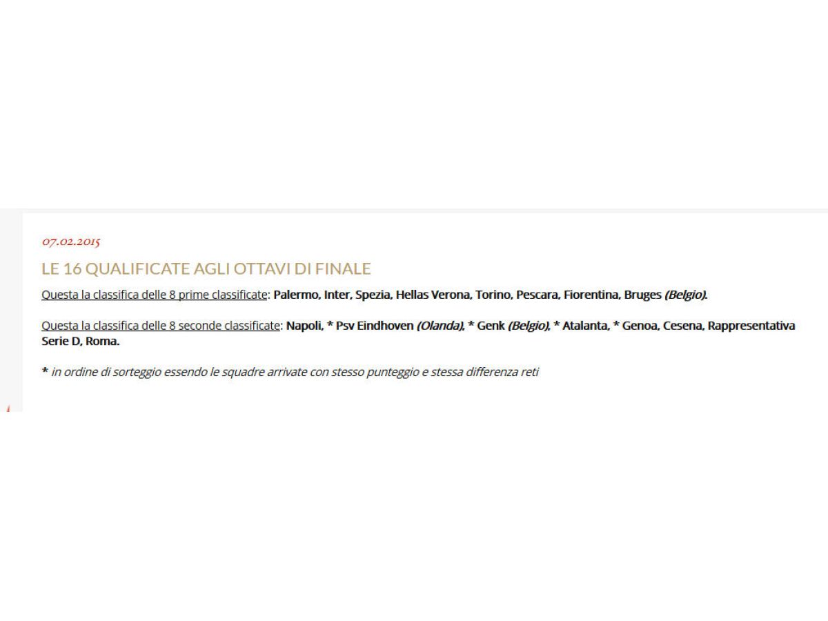 Foto dei tifosi da DonatoCavallo Spogliatoio Primavera. 11-02-2015 ore 15:03:33IP: 87.22.219.*** da Papageno2 . 10-02-2015 ore 20:32:24IP: 93.151.49.*** da Papageno2 . 07-02-2015 ore 22:03:36IP: 93.151.49.*** da Papageno2 Torneo di Viareggio: squadre classificate 07-02-2015 ore 21:56:03IP: 93.151.49.*** da Papageno2 Tabellone eliminatorio Torneo di Viareggio 07-02-2015 ore 21:49:30IP: 93.151.49.*** da PieroMilano RAI SPORT UNO 07/02 07-02-2015 ore 11:33:44IP: 93.33.135.*** da giobiancazzurro74 nu sem nu 06-02-2015 ore 21:24:43IP: 188.217.30.*** da andreuzza il futuro prossimo 05-02-2015 ore 18:20:01IP: 79.8.248.*** da Lou_Pourcell l'Indiano deve tornare tra di noi.... 05-02-2015 ore 06:37:16IP: 95.242.185.*** da andreuzza 1-0 al bologna e primi i classifica, grandi ragazzi! 04-02-2015 ore 12:20:34IP: 79.8.248.*** da zanni Prima foto del ritorno di Marco Sansovini oggi al Vestina. 03-02-2015 ore 19:03:01IP: 82.53.112.*** «249250251252253254255256257258259» Inserisci la tua foto Devi aver effettuato l'accesso prima di poter pubblicare una foto, clicca qui se sei registrato. Condizioni di utilizzo Non sei registrato?