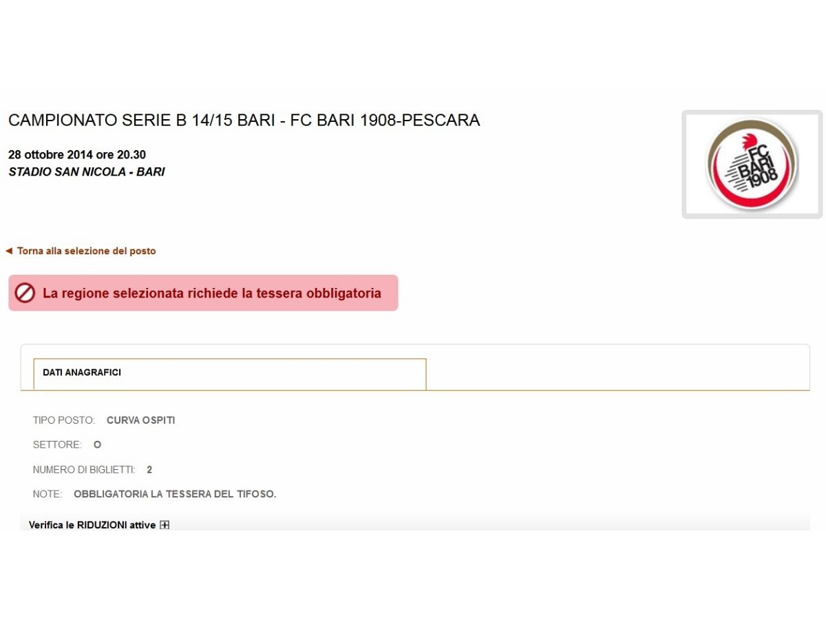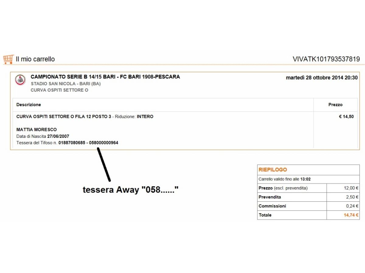 Biglietto X Bari con la Away (tessera "058....") ora è ok!!!