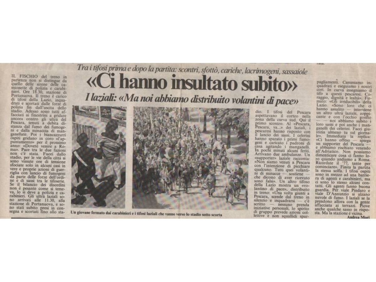 Foto dei tifosi da Pescarese...mente http://ilcentro.gelocal.it/sport/2012/10/05/news/tifo-tensione-per-un-fotomontaggio-1.5808725 05-10-2012 ore 12:18:19IP: 62.94.56.*** da lapescara Questo è l'ultimo Capracotta-Pescara...al ritorno considerando che a novembre eravamo già in B 05-10-2012 ore 10:55:01IP: 95.242.185.*** da lapescara Non c'è un xchè...è che ci stanno sul caxxo!!! 05-10-2012 ore 10:52:46IP: 95.242.185.*** da lapescara Qualche souvenir l'abbiamo pure Noi 05-10-2012 ore 10:52:02IP: 95.242.185.*** da ruspa74 ... 05-10-2012 ore 10:40:51IP: 82.61.127.*** da Pescarese...mente Il televideo Rai di ieri....... 05-10-2012 ore 10:39:47IP: 62.94.56.*** da Wario ... 05-10-2012 ore 00:50:30IP: 93.151.78.*** da pescarancia Wahahahahah 04-10-2012 ore 23:57:01IP: 37.182.75.*** da Harken i volantini di pace.... 04-10-2012 ore 21:40:00IP: 93.42.161.*** da PE_NEWDOOR la mega invasione del '88......quess è la realtà 04-10-2012 ore 19:22:54IP: 79.55.181.*** da badboys1985 dai cazzoooooo... 04-10-2012 ore 16:29:40IP: 87.20.182.*** «747748749750751752753754755756757» Inserisci la tua foto Devi aver effettuato l'accesso prima di poter pubblicare una foto, clicca qui se sei registrato. Condizioni di utilizzo Non sei registrato?